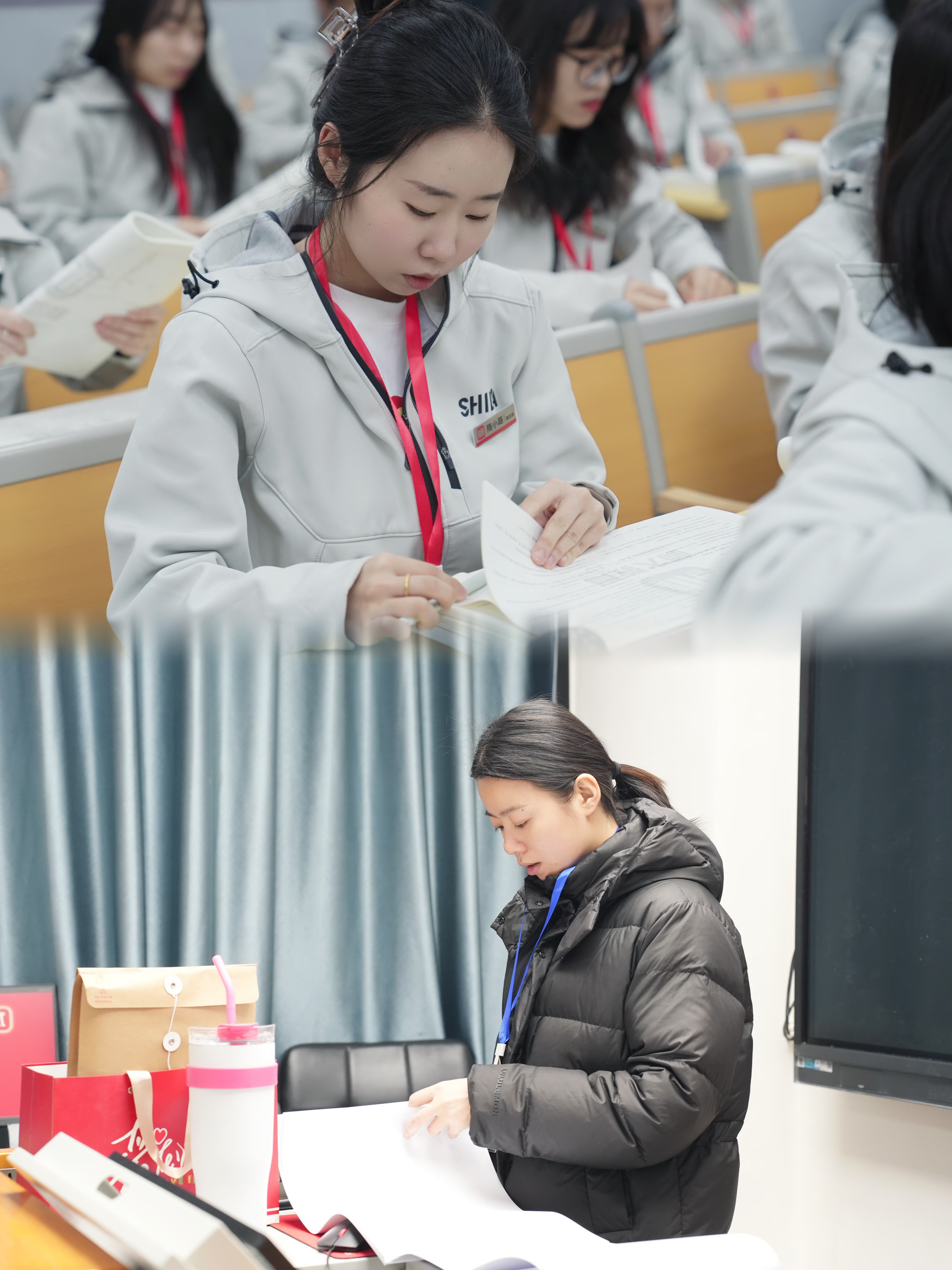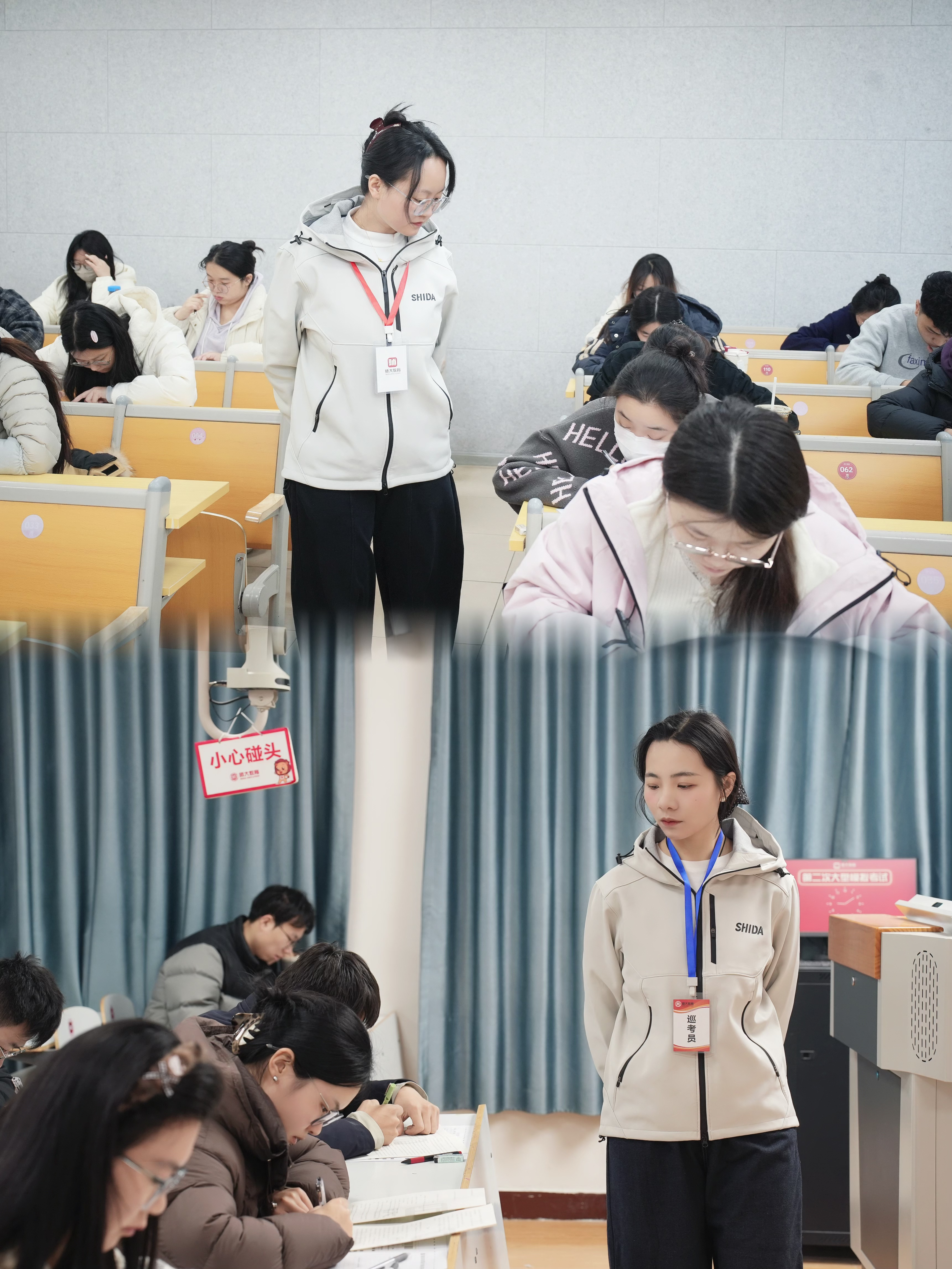班主任们则化身严谨细致的考场“把关人”,成为“爆改”二模考场的核心担当。他们从逐一确认准考证信息,到将试卷与答题卡平整地分发给每一位同学;从轻声提醒“个人信息先填好”,到放缓脚步轻声巡视,用行动把考场“爆改”成让人倍感安心的梦想空间。