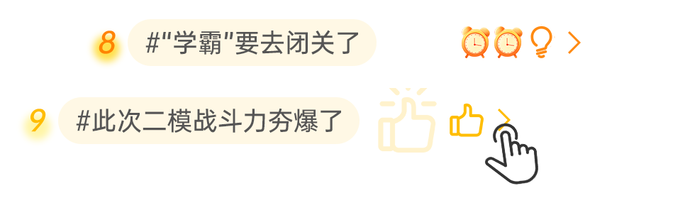 征程还在继续,热度未减,光芒渐亮,真正的冲刺,现在才进入最关键的阶段。以二模为镜,更以二模为阶,稳住节奏,持续输出,你便是自己故事里的“热搜主角”,加油,未来本科生!