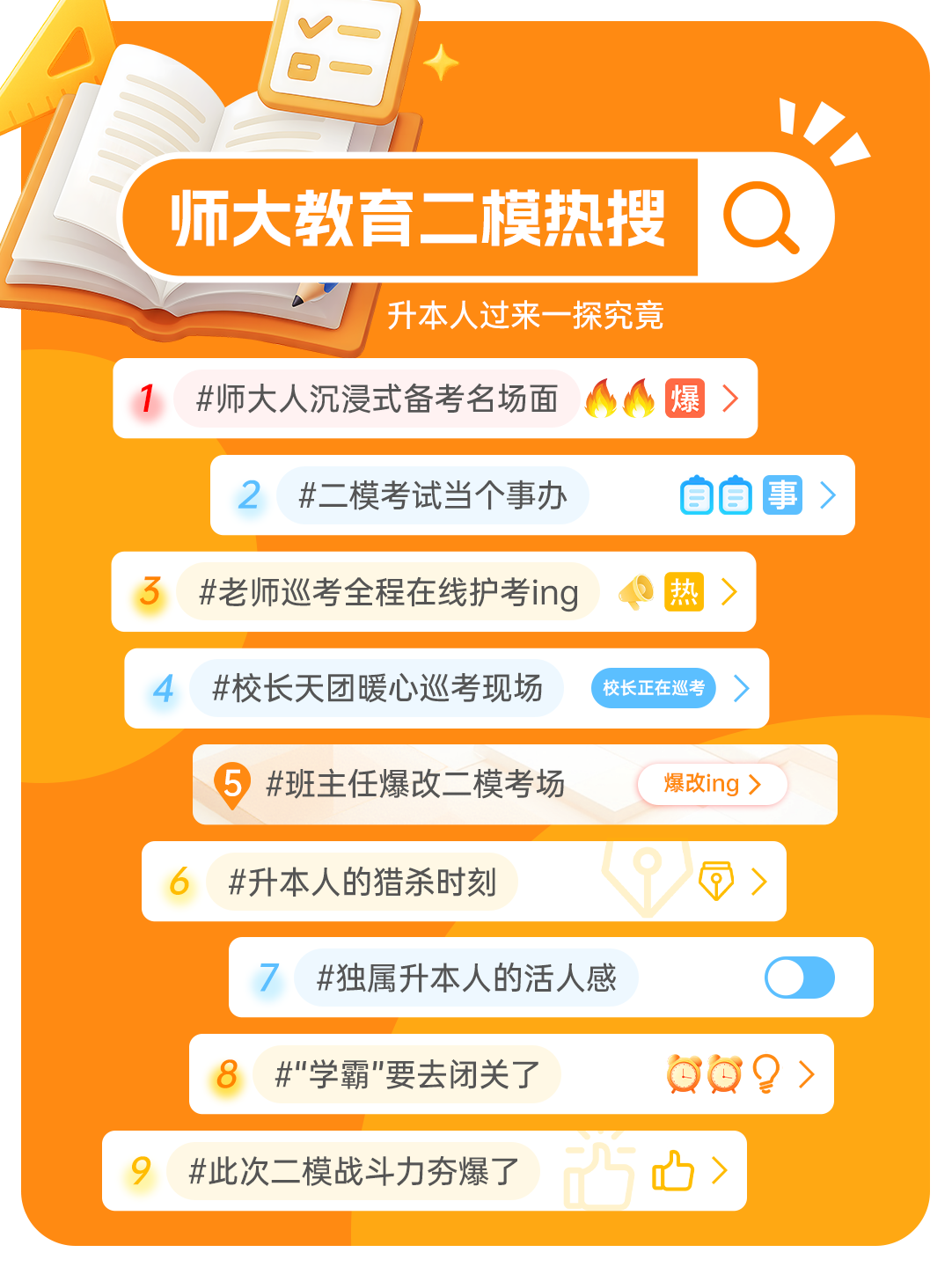 现在,让我们一一查看这份“升本人专属热搜榜”,回顾这场关于梦想蓄力的“顶流”时刻