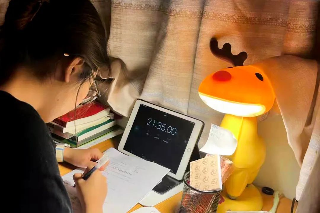 夜晚的宿舍、晚自习充斥着各种游戏、追剧、以及电话粥的声音,它们伴随着我度过了一个个不眠之夜。每每这时我都无比怀念线下并肩作战的日子,怀念所有人都向着一个目标努力的氛围,怀念上课犯困后会有班主任及时把我喊醒……而线上的我,只能戴上耳机,凭借自制力,让自己沉浸在备考的氛围里,独自与懒惰懈怠抗衡。