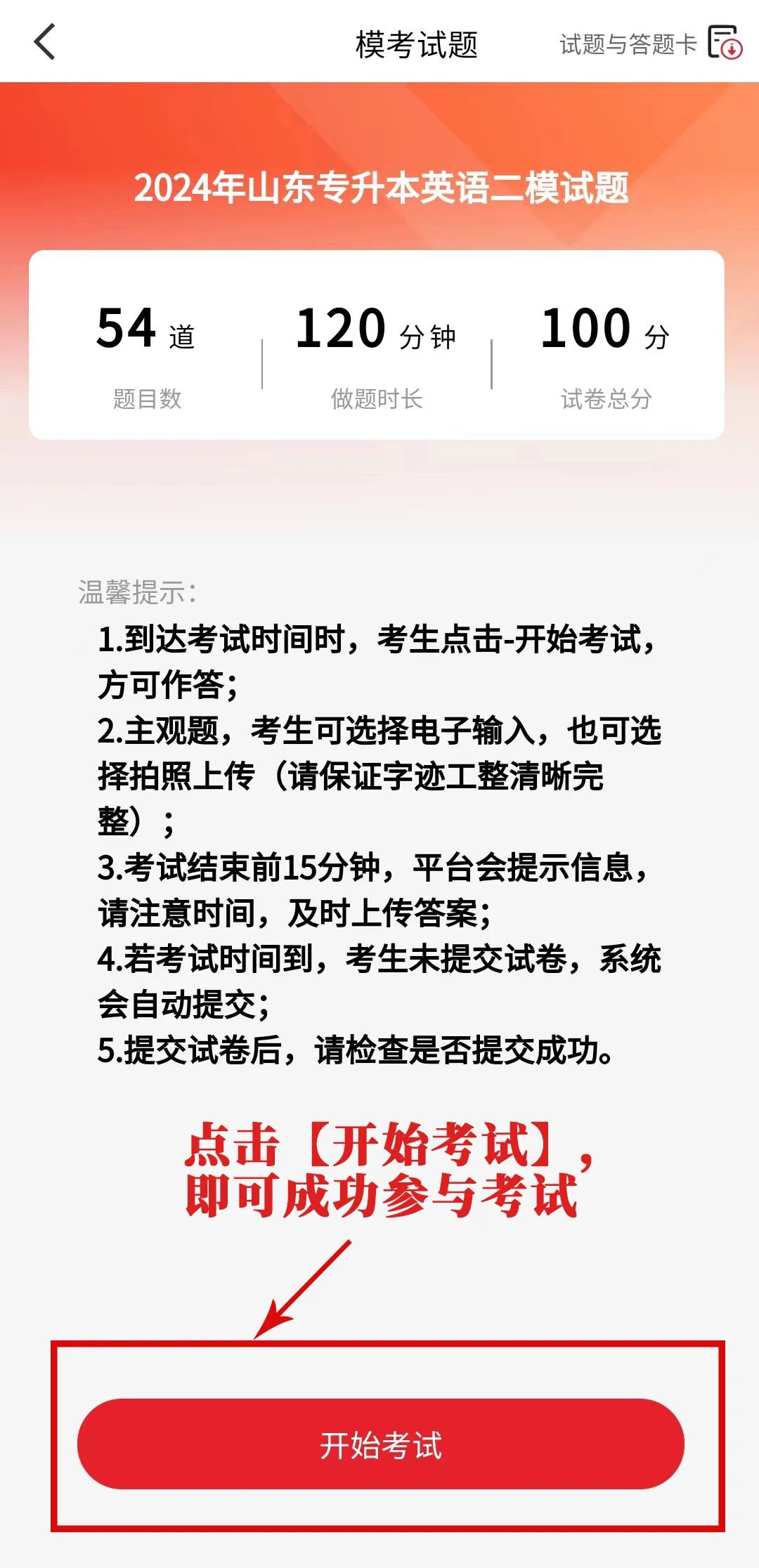 正式考试开启后,点击【进入考场】,并点击【开始考试】,即可成功参与师大教育第二次大型模拟考试。