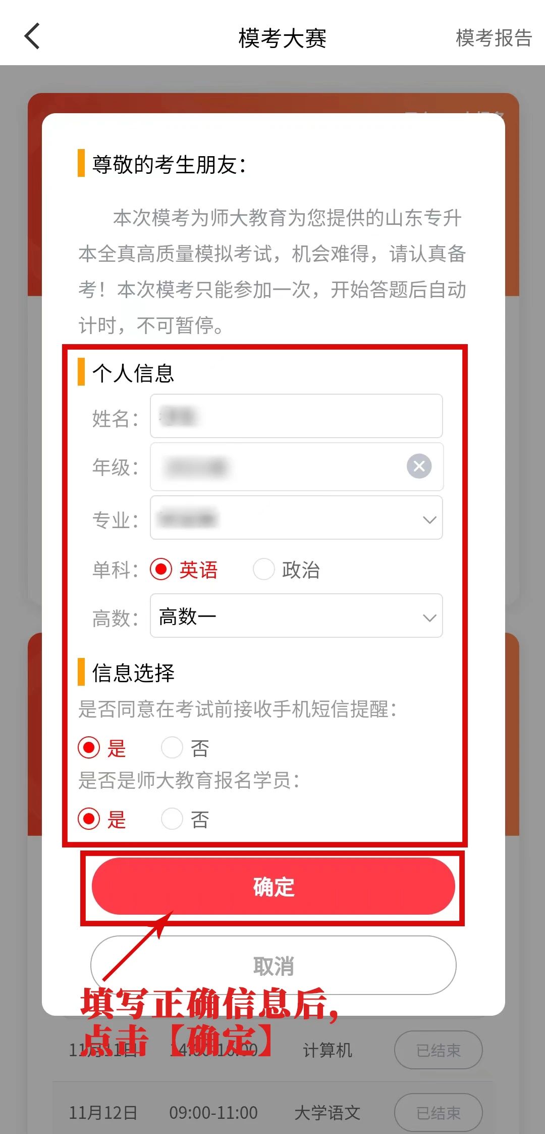 正确填写各项信息,检查无误后点击【确定】。