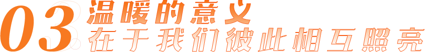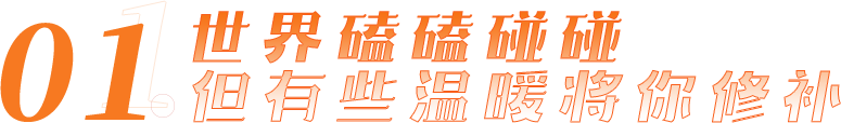 或许这份治愈来源于家人,在某个傍晚相隔几百公里的父母简单一句“明天气温骤降,记得多多添衣”;又或许这份治愈来源于朋友,在某个因为种种原因失落的瞬间,TA静静聆听,用美食抚慰你的身心;又或许这份治愈来源于生活中任何一个偶然相遇的陌生人,是一双健壮的手臂主动帮你提起了沉重的行李,是风雪中老乡主动载你的一程……