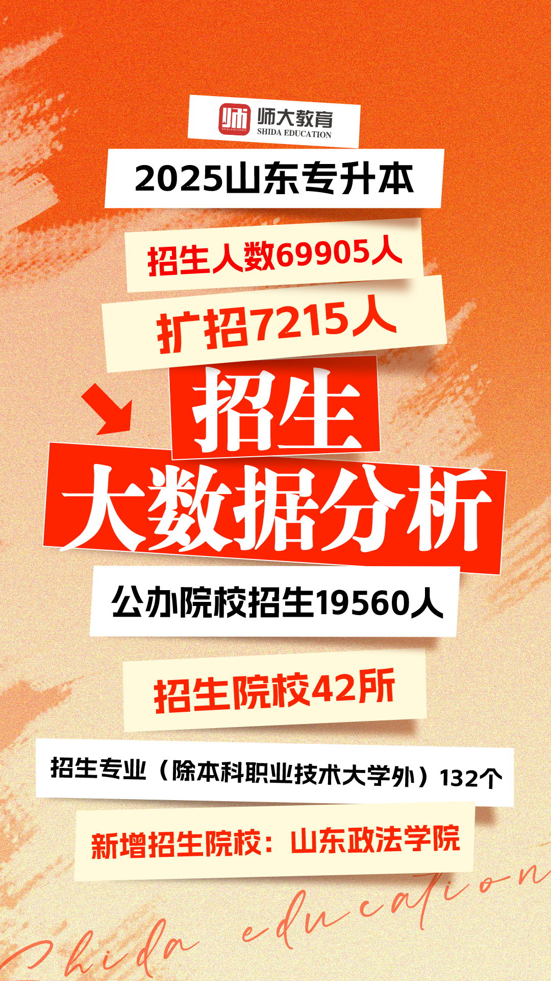 值得重点关注的是公办院校的扩招力度:山东省2025年公办院校招生19560人,较2024年的17685人净增1875人;新增公办院校“山东政法学院”,为考生提供更多优质升学选择。