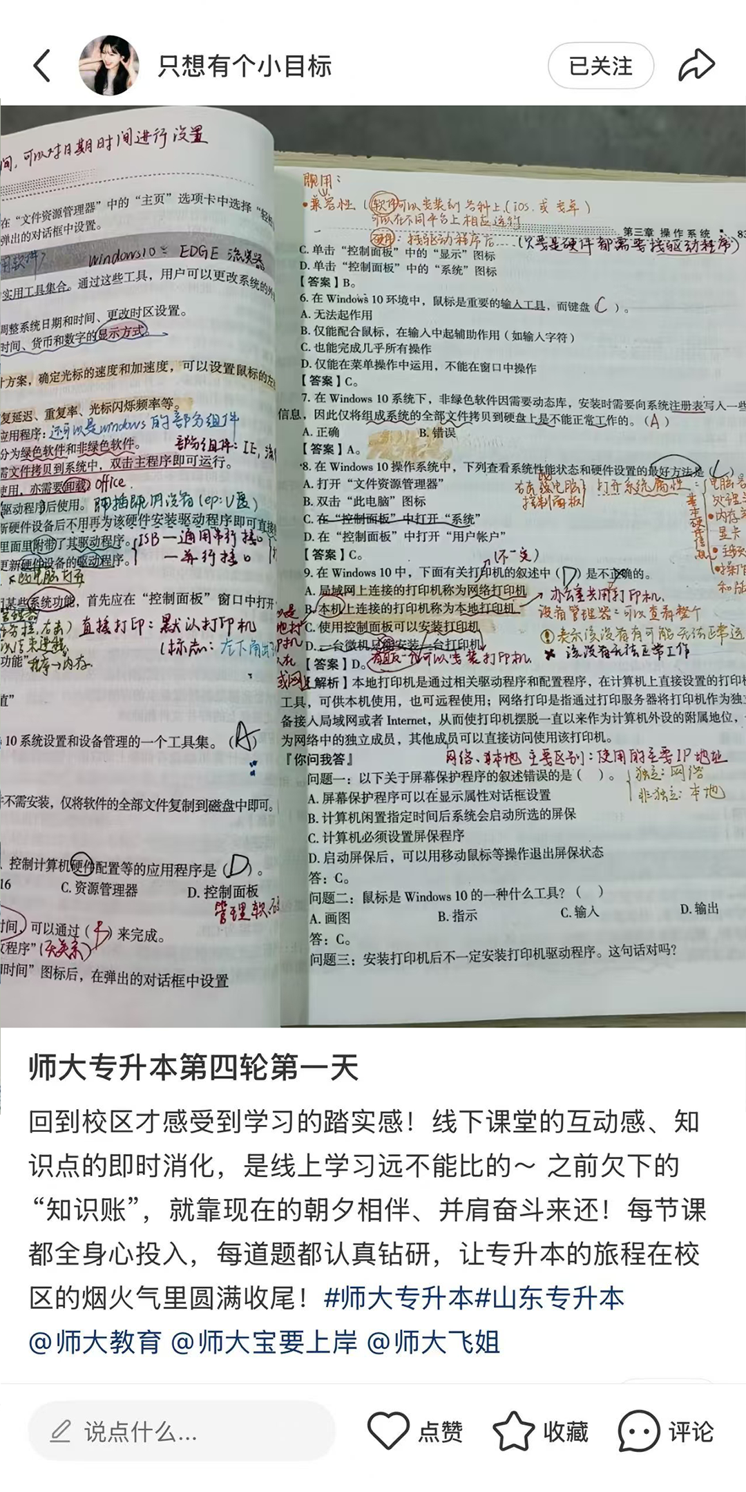 置身校园的沉浸式环境中,能快速沉下心进入专注状态,从前零散的时间被高效利用,每一天都过得充实又有分量,满是为目标奋力拼搏的踏实感。