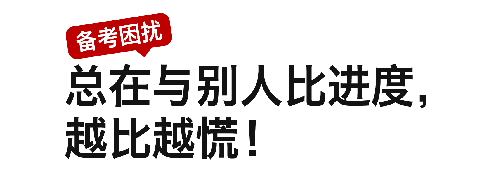Q:马上一模考试了,感觉很焦虑。特别是当我看到其他同学比我的学习进度快的时候,心态直接崩了。自己天天熬夜看书刷题,可还有好多知识点没吃透。看着其他人遥遥领先的进度,我会不受控制地立刻加快手里的速度,想把落下的追回来,但结果往往是,题也没看懂,计划也打乱了,整个人更加焦头烂额。我应该如何应对这种情况?