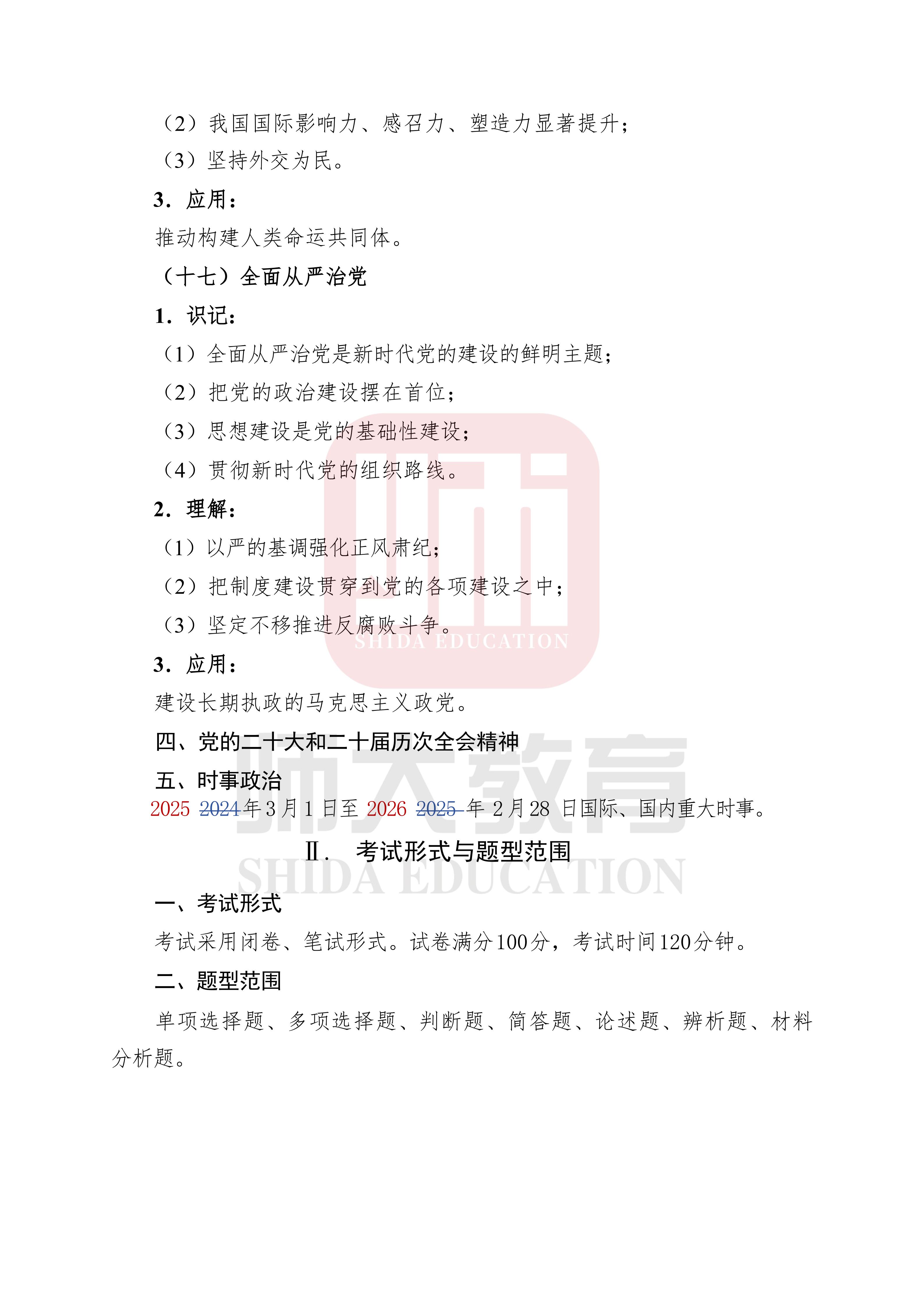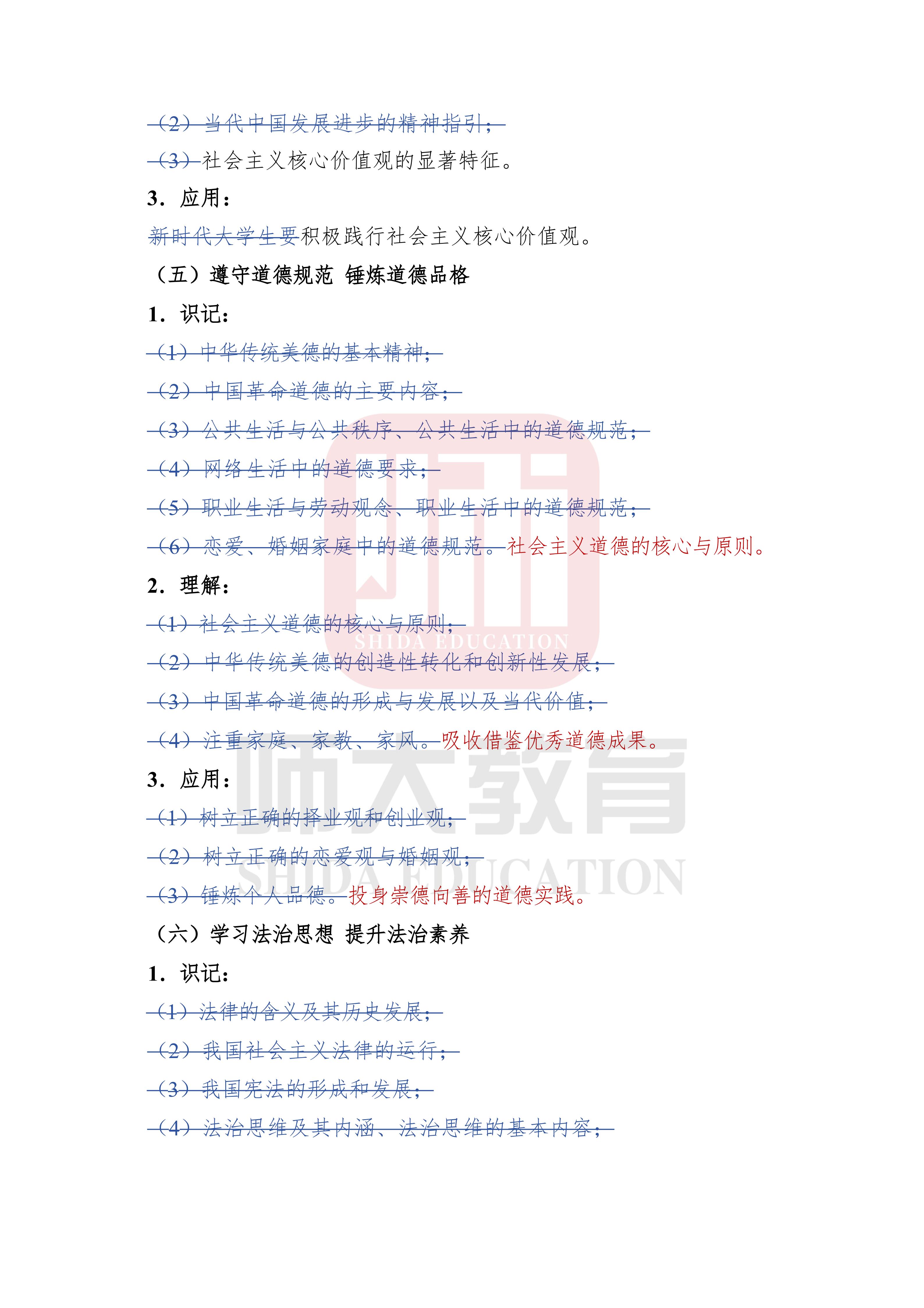 政治考试内容有所变化,主要变化部分为“思想道德与法治”及“时事政治”两部分,现将改动放置如下,请各位同学及时查看相应变动,根据新大纲调整复习内容!