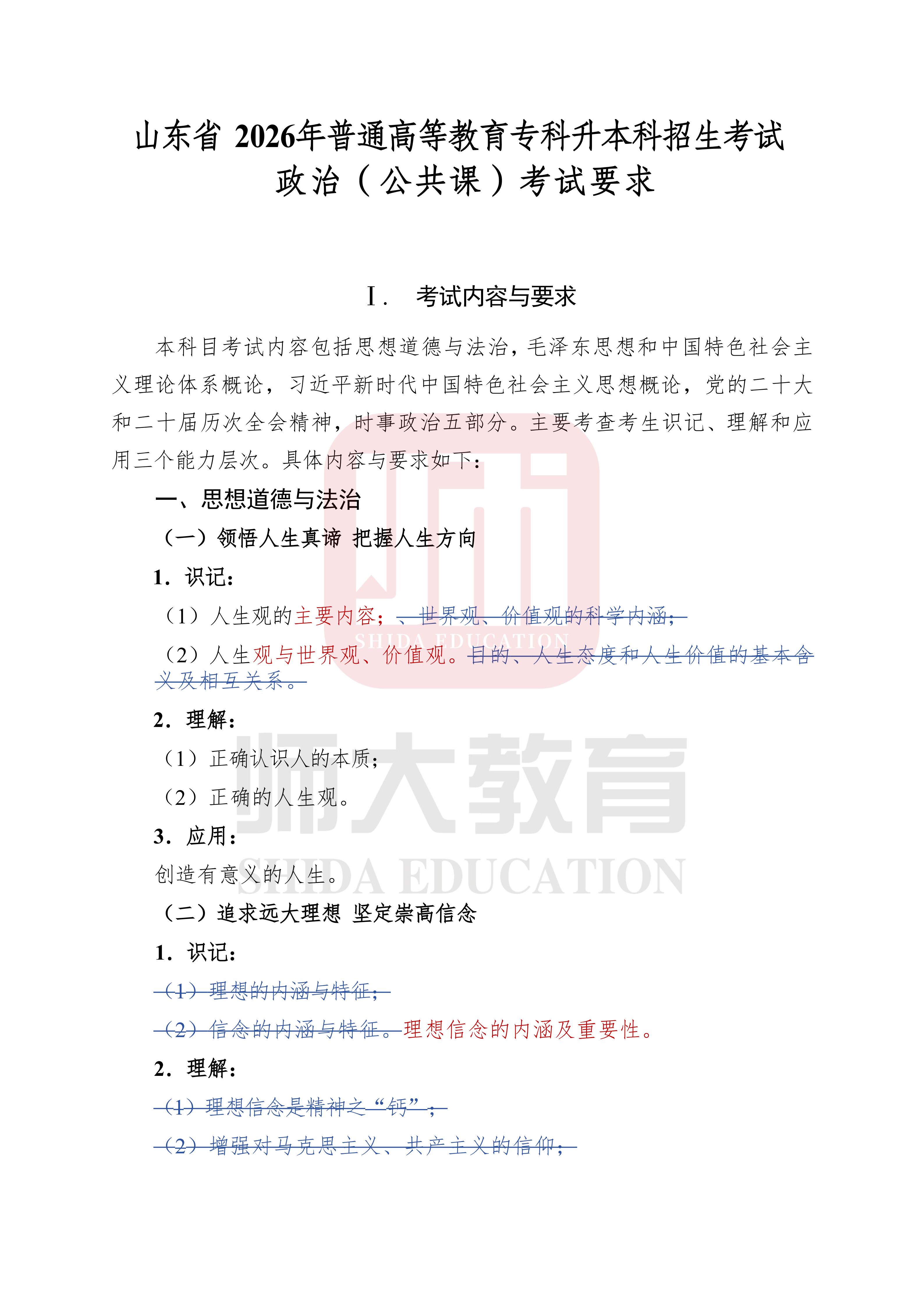 点击查看:山东省2026年普通高等教育专科升本科招生考试公共基础课考试要求