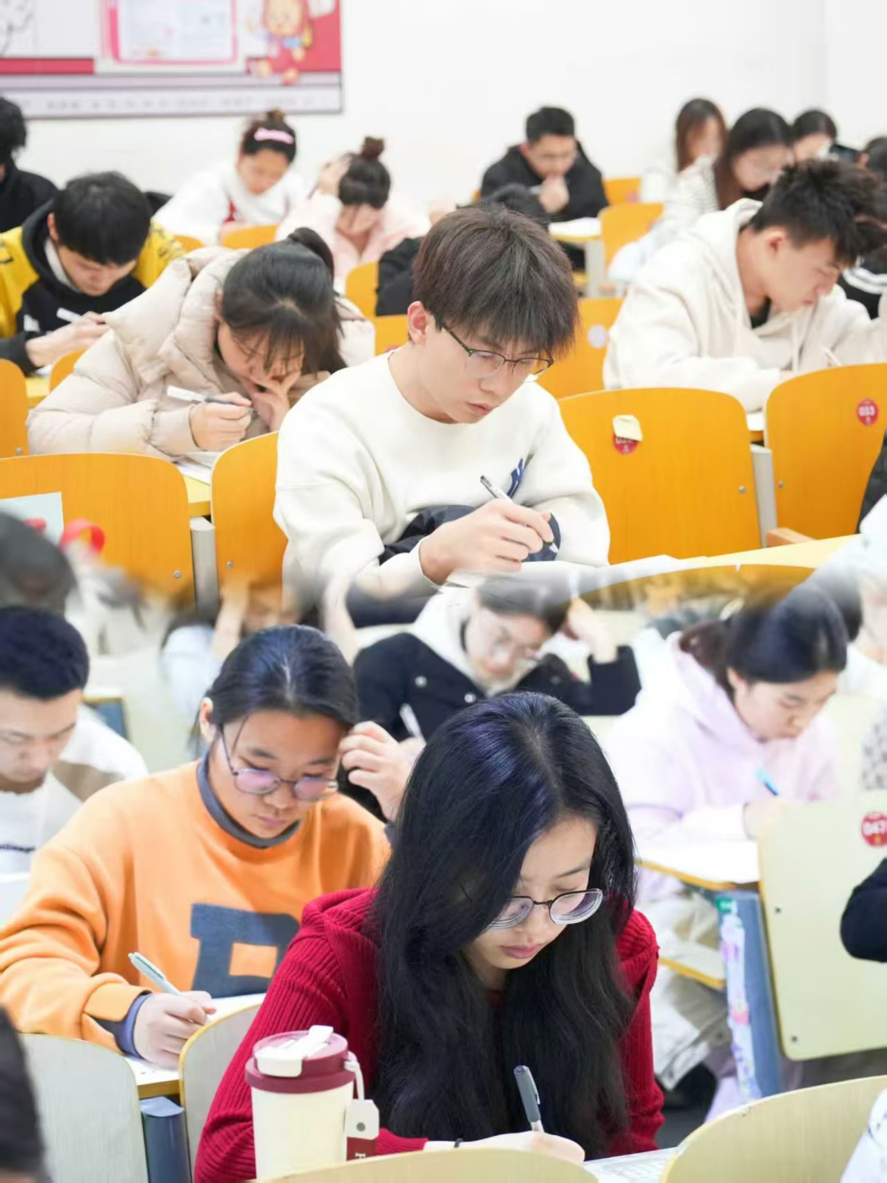 冬寒漫过校园,却挡不住同学们备考的滚烫热情。这份为梦想拼搏的执着,化作最暖的光,驱散了寒意,让校园满是向上的温度。