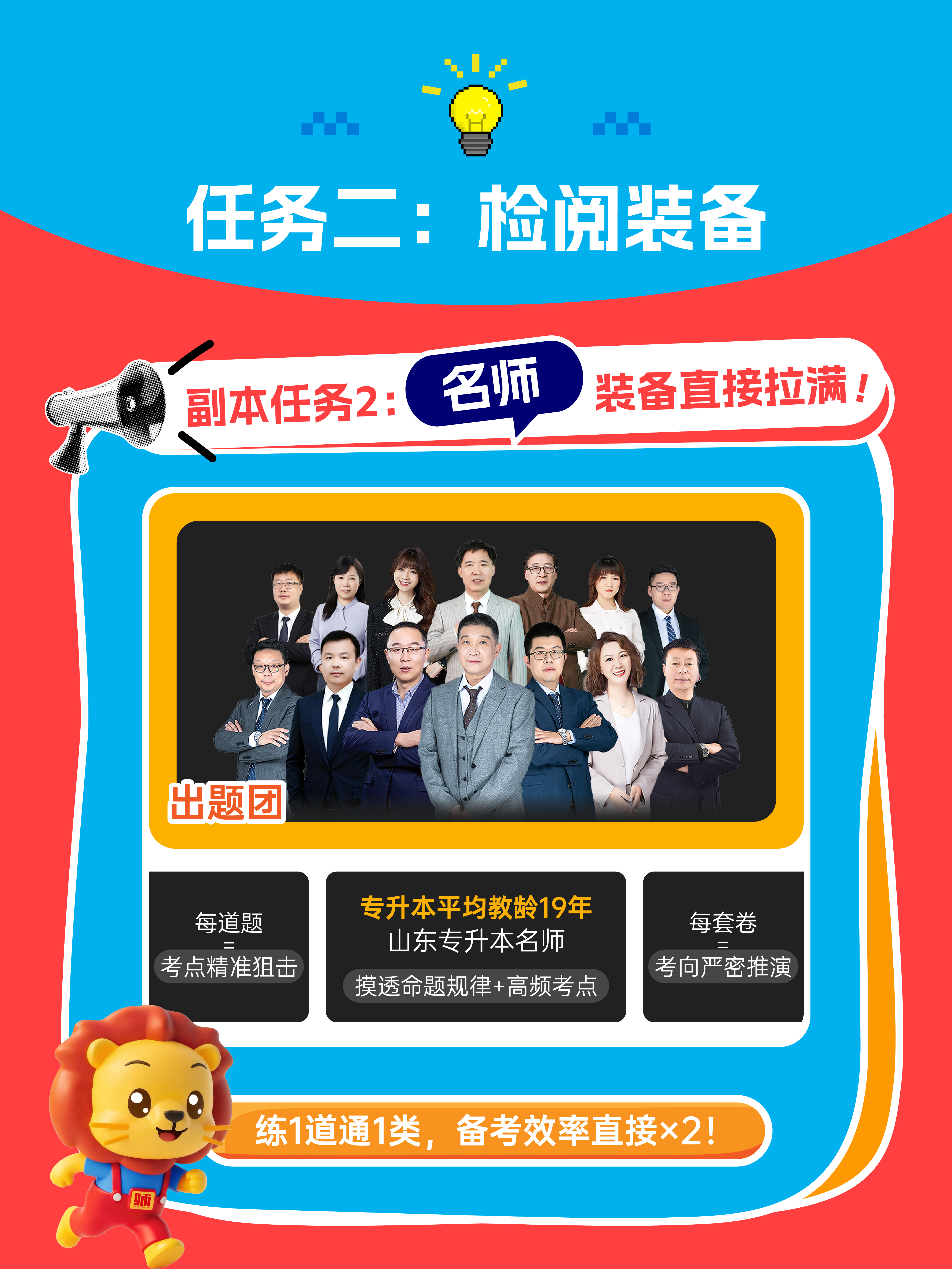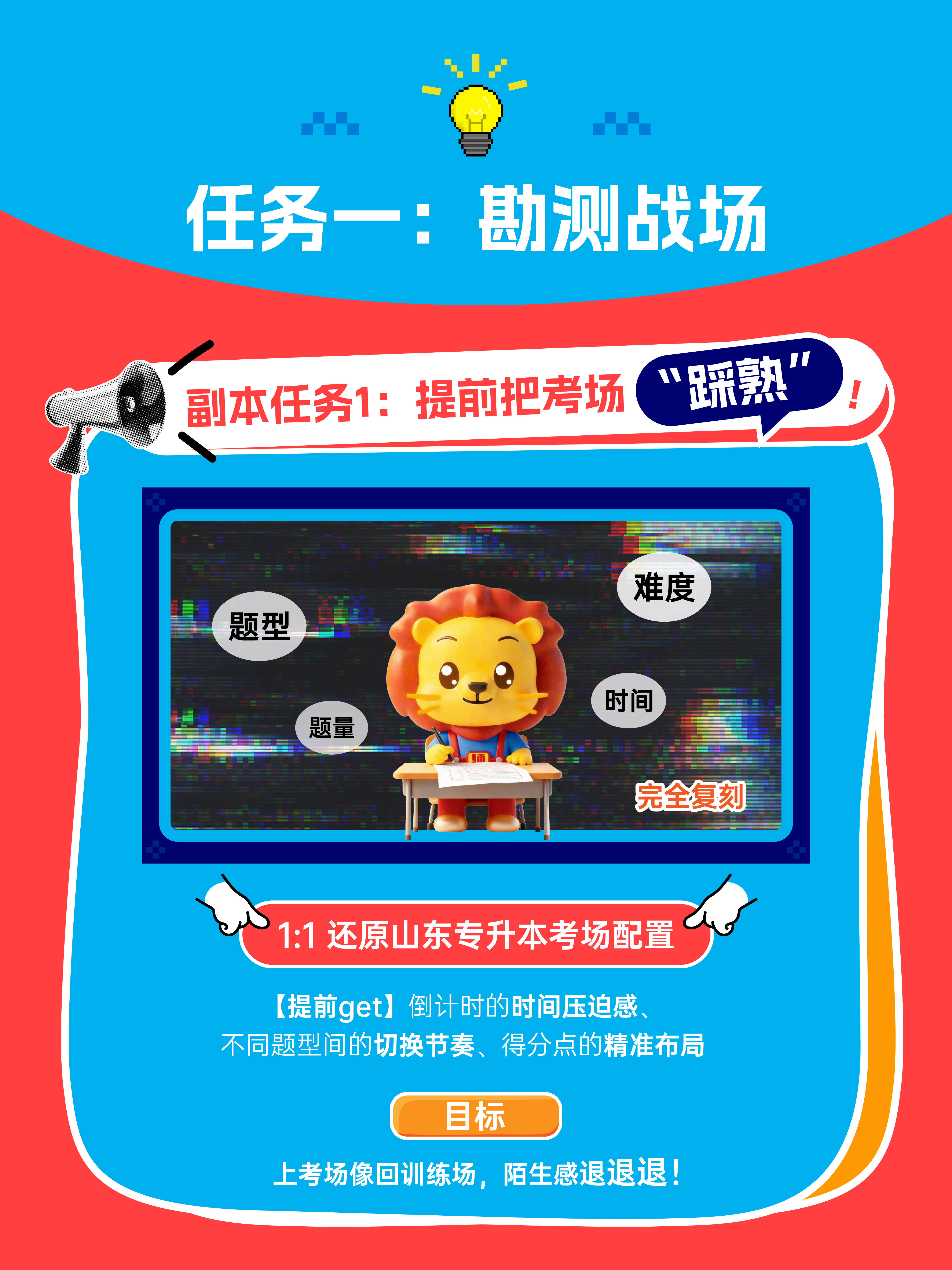 升本玩家请注意!你的年度备考主线任务已更新,进度条进入最终冲刺阶段,知识技能树仍有盲区待点亮,错题装备库亟待复盘检阅,而终极BOSS「专升本考试」正潜伏在备考终点,静候你的终极对决。