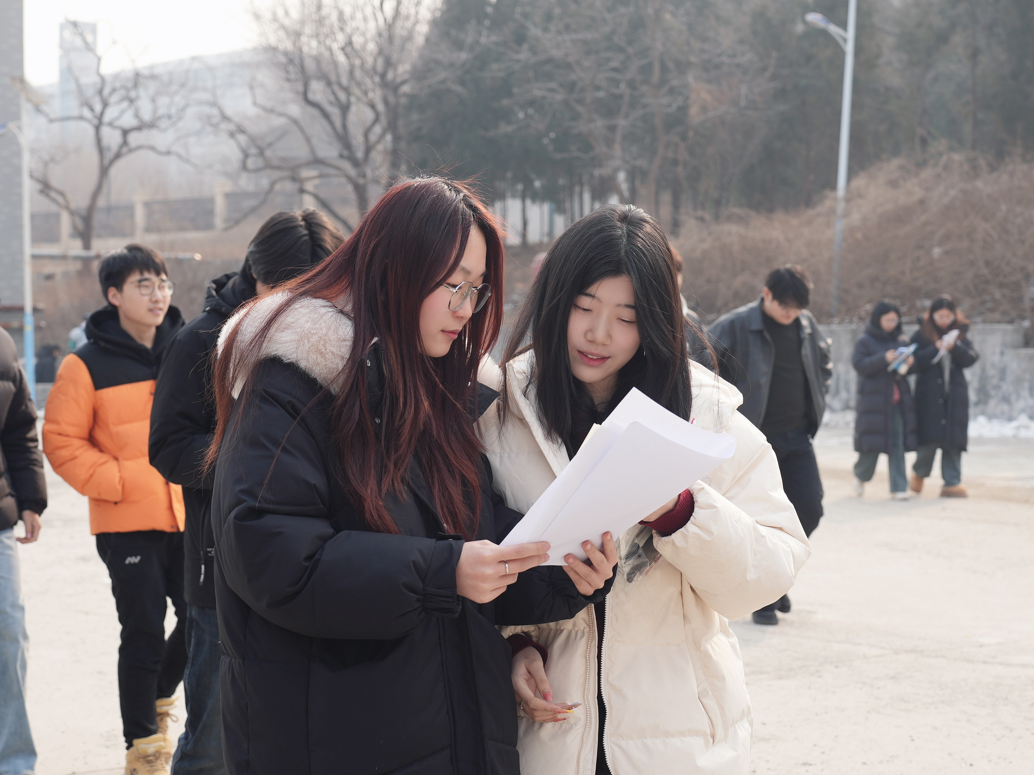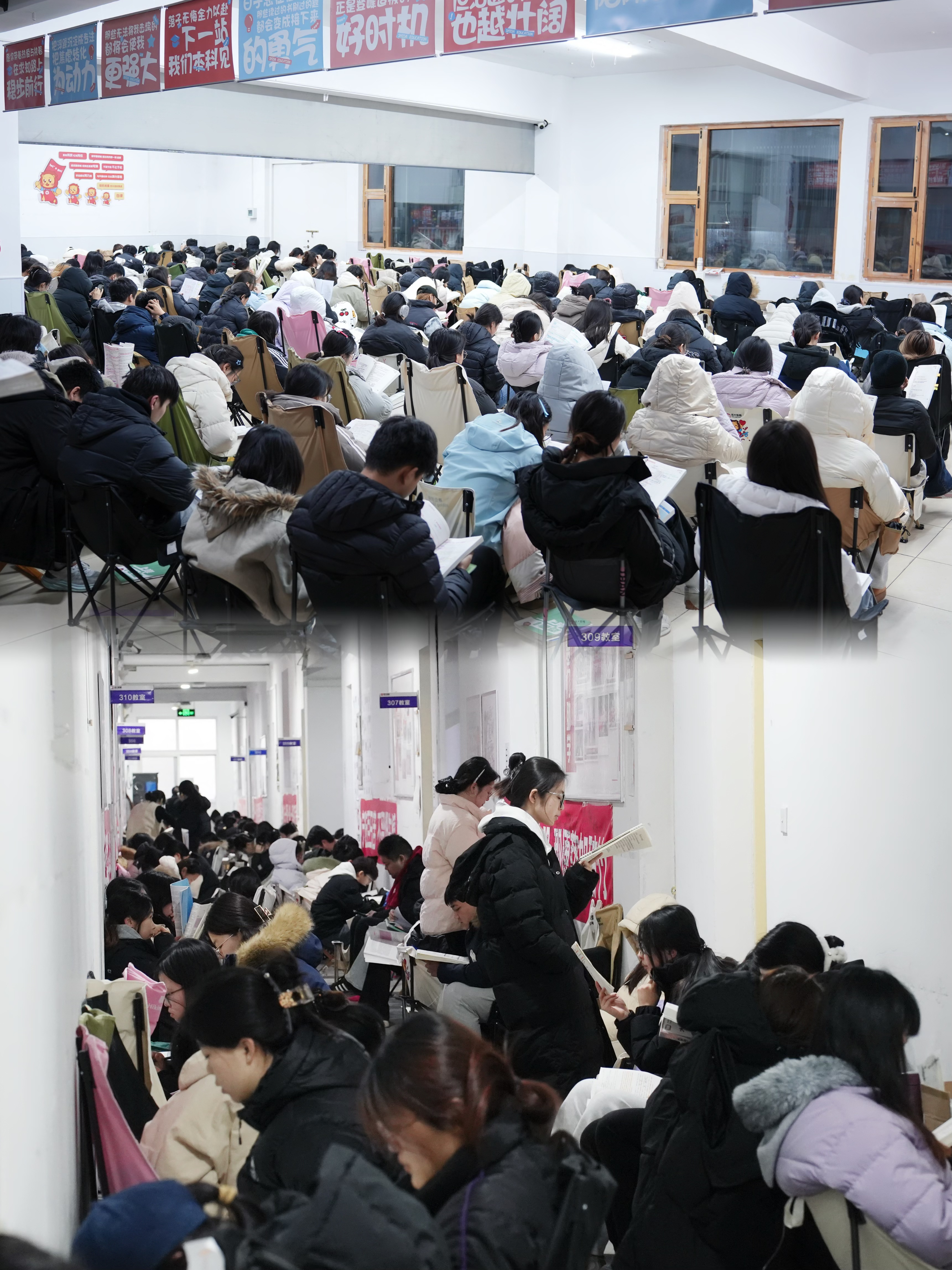 教学楼走廊上、大厅里、教室一角,处处都是师大人沉浸式冲刺的身影。笔尖与纸张的摩擦声、轻声背诵的回响、翻阅笔记的沙沙声,交织成冬日里最热血的备考旋律。