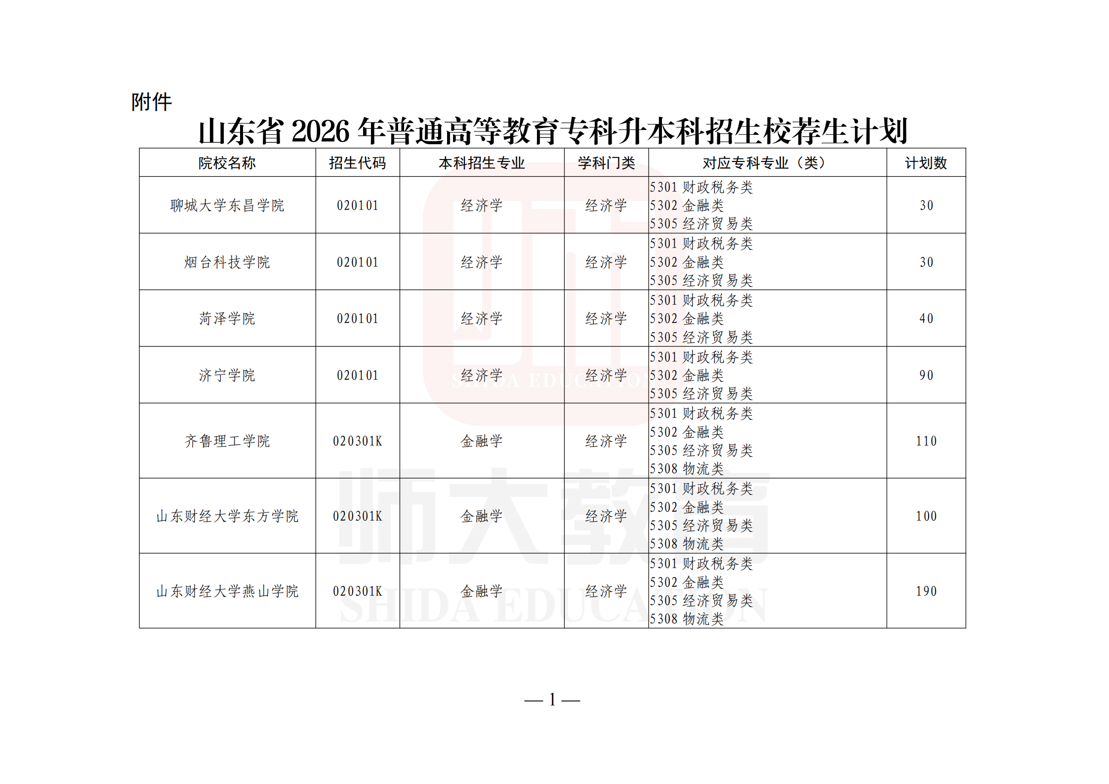 根据《山东省教育厅 山东省人民政府征兵办公室 山东省退役军人事务厅关于做好2026年普通高等教育专科升本科考试招生工作的通知》(鲁教学函〔2025〕24号)等文件要求,现公布我省2026年普通高等教育专科升本科招生校荐生计划(见附件)。