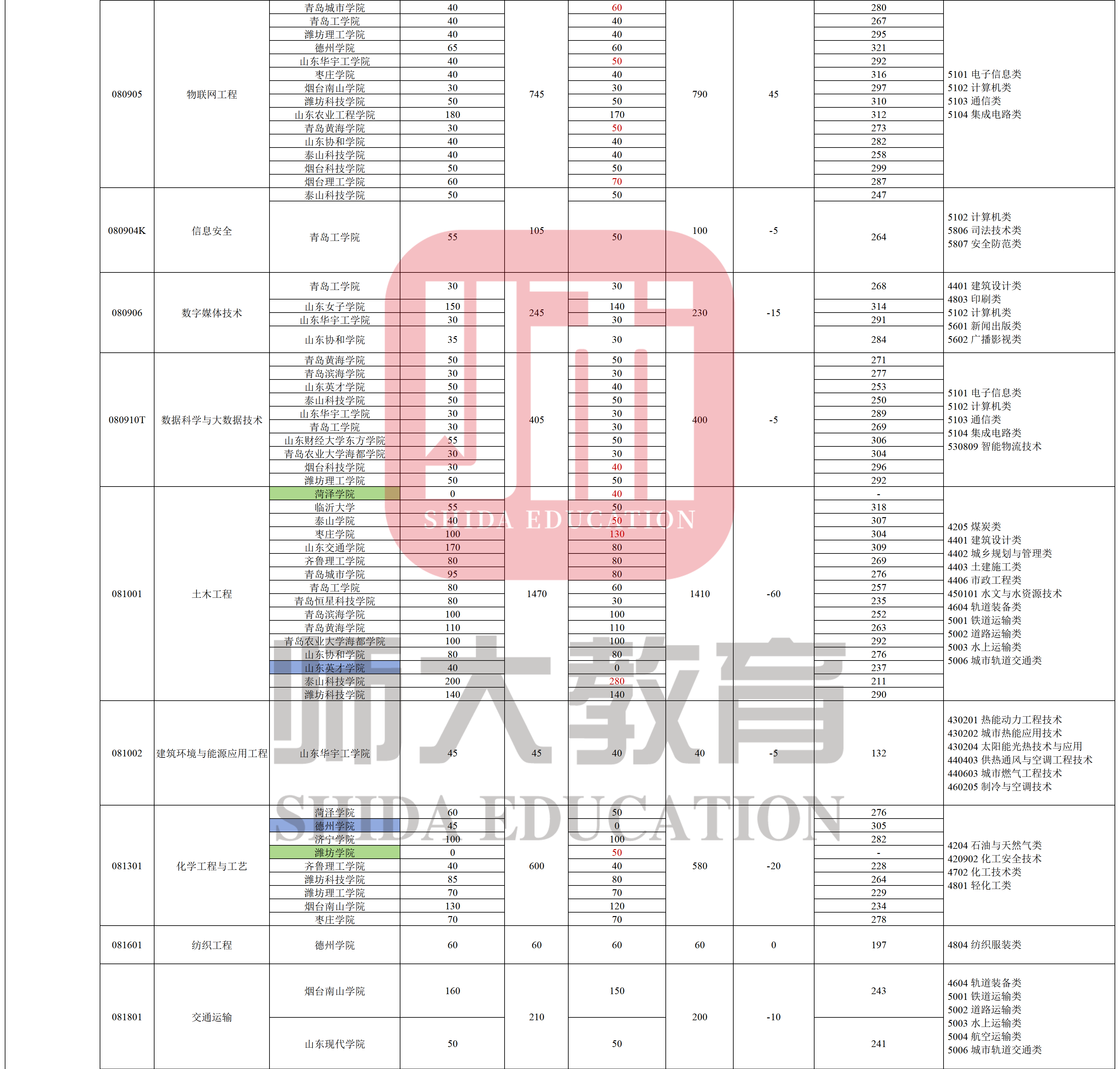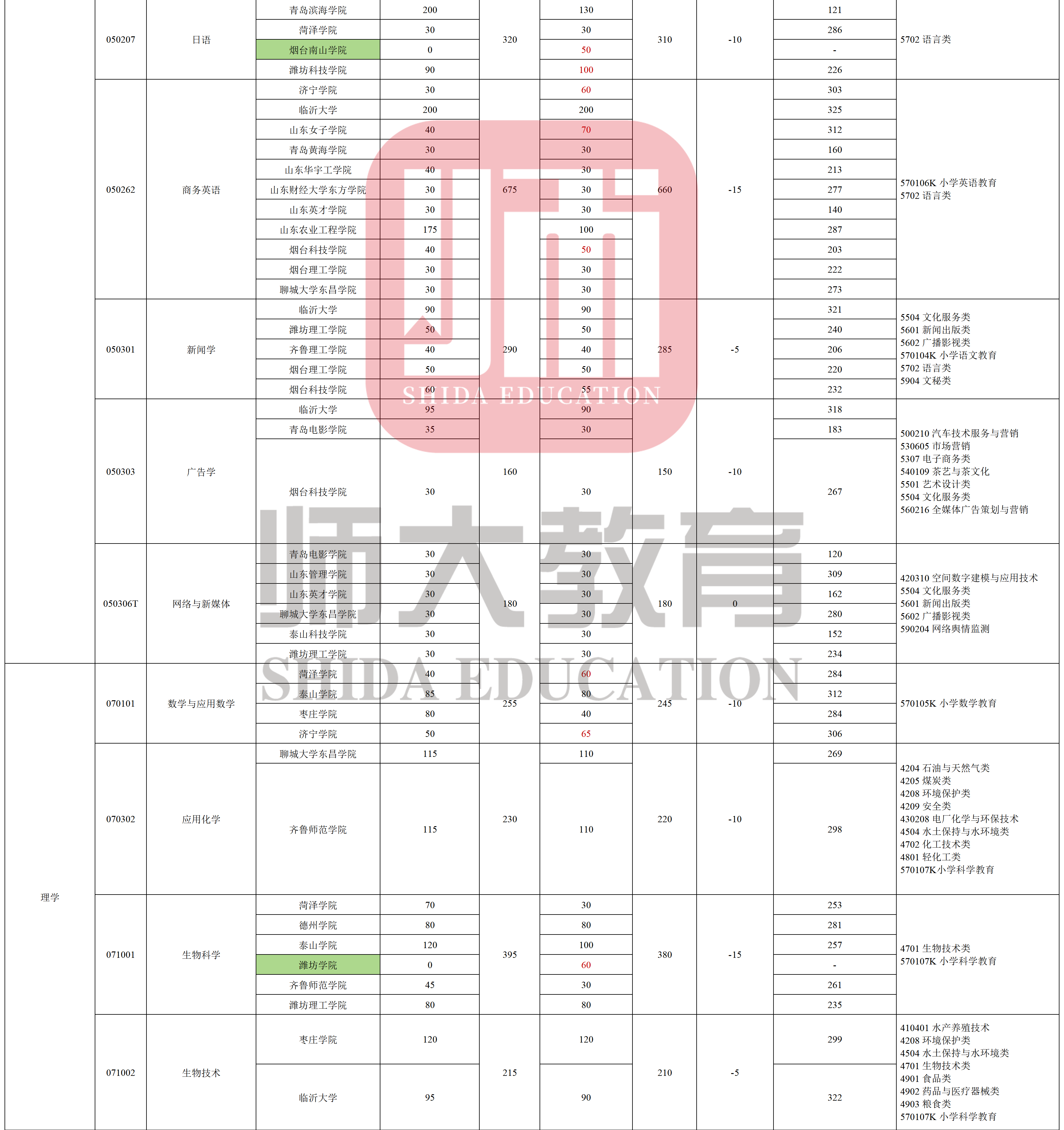 2026年共计42所院校参与山东专升本考试招生,校荐生招生计划数为67540人,比2025年减少2365人。